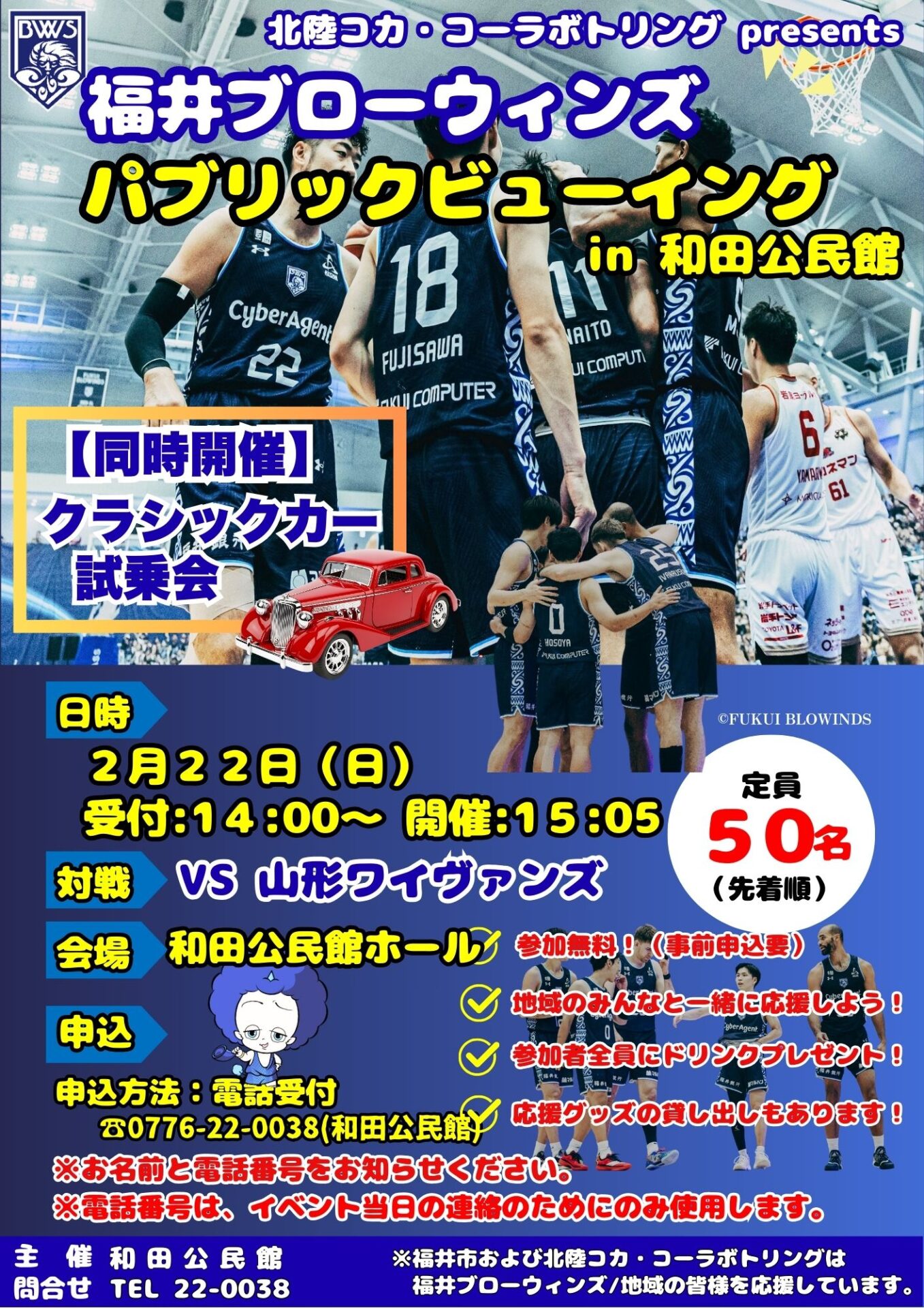 和田公民館では、福井ブローウィンズの公式戦を大画面で観戦できる
